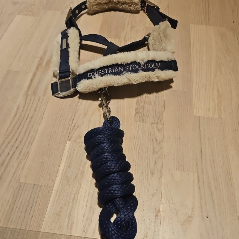 Snyggt och mjukt grimma från Equestrian Stockholm i marinblå med grimskaft