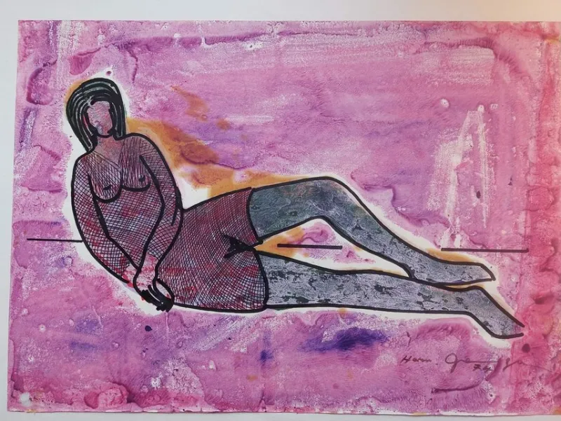 Hermann Geiger. Signerad målning (akvarell, blandteknik). 1974