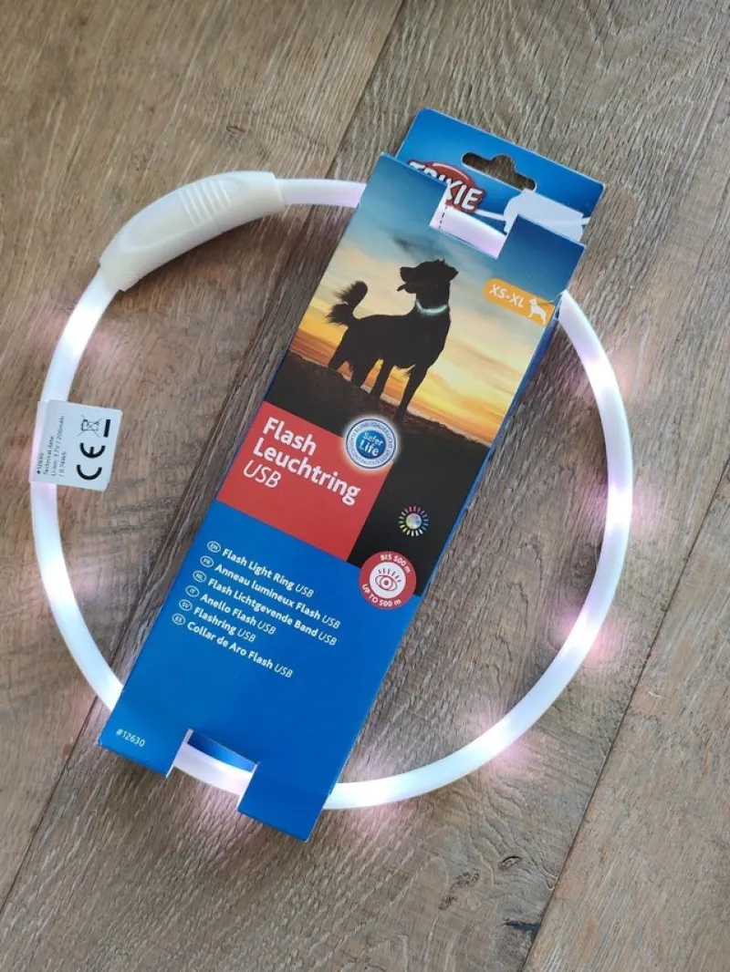 LED-halsband för hundar i storlek S-M. Halsbandet är utrustat med en LED-lampa som kan blinka eller lysa konstant. Halsbandet är laddningsbart via USB och har en räckvidd på upp till 200 meter. Halsbandet är vattentätt och har en säkerhetslås.