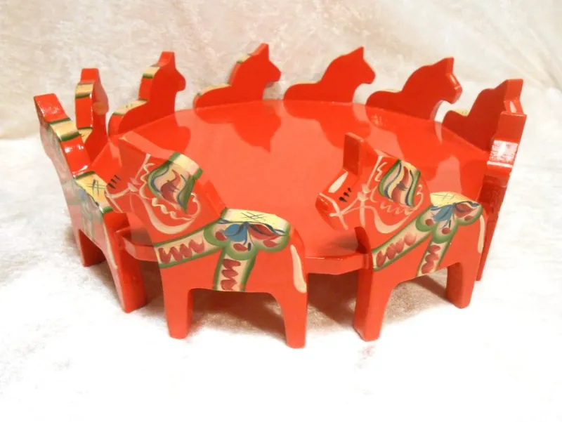 Tradera KAKFAT DALAHÄSTAR NILS OLSSON NUSNÄS. 28 CM I DIAMETER, HÖJD 10 CM.^ Dalahästar
