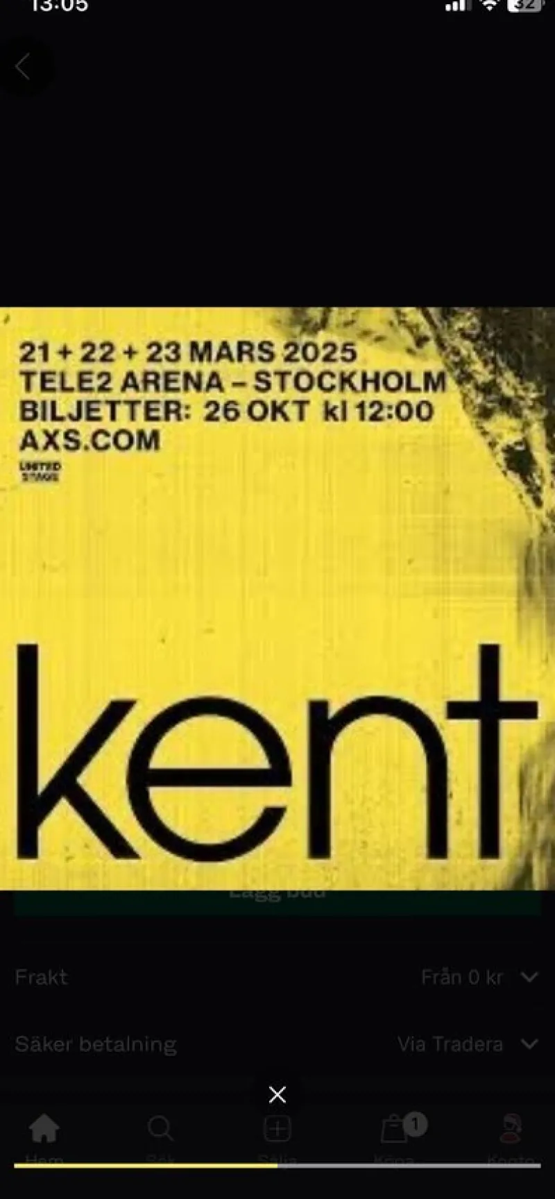 Kent konsert, sittplats, torsdag 27 mars.