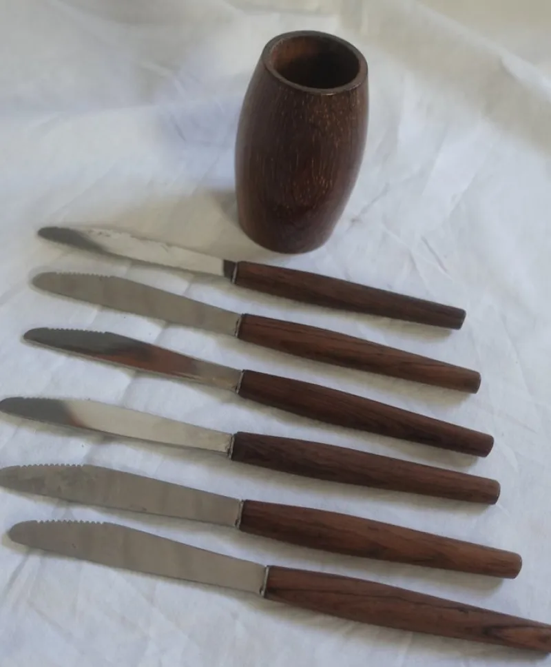 Tradera Knivställ / knivar ställ – knivar i teak rostfritt – Rostfrei Solingen 50-60-tal> Bruks- & Prydnadsföremål