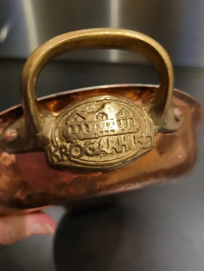 Krögarhuset kopparform med mässingshandtag. Perfekt för servering eller dekoration.