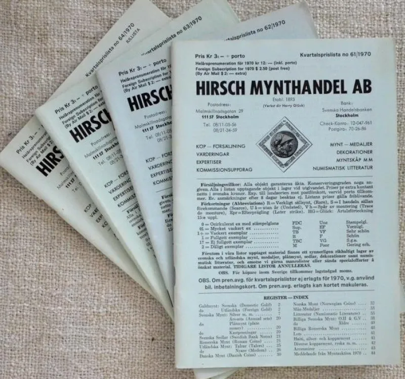 LITTERATUR. Hirsch Mynthandel. Lagerlista 61-64, 1970.