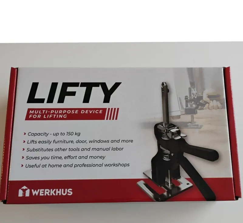 LIFTY är en mångsidig lyftanordning som klarar upp till 150 kg. Den lyfter enkelt möbler, dörrar, fönster och mycket mer. Ersätter andra verktyg och manuellt arbete, vilket sparar tid, ansträngning och pengar. Användbar både hemma och i professionella verkstäder.