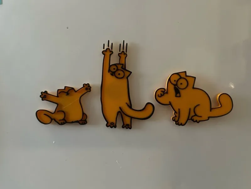 Säljer här tre unika magnetfigurer föreställande katter. Figurerna är i orange färg med svarta detaljer. Perfekta för att sätta lite extra guldkant på kylskåpet eller andra magnetiska ytor. Gjorda i plast
