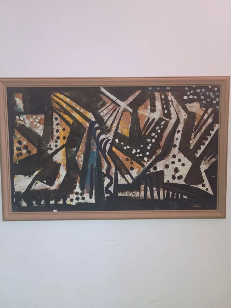 Abstrakt målning. Signerad,troligtvis på pannå.