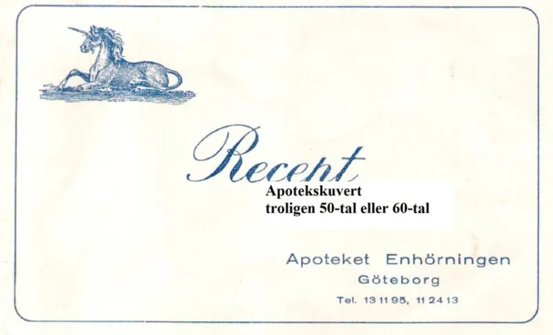 Tradera Medicinska Prylar<Apotekskuvert Apoteket Enhörningen Göteborg 50-tal 60-tal ?