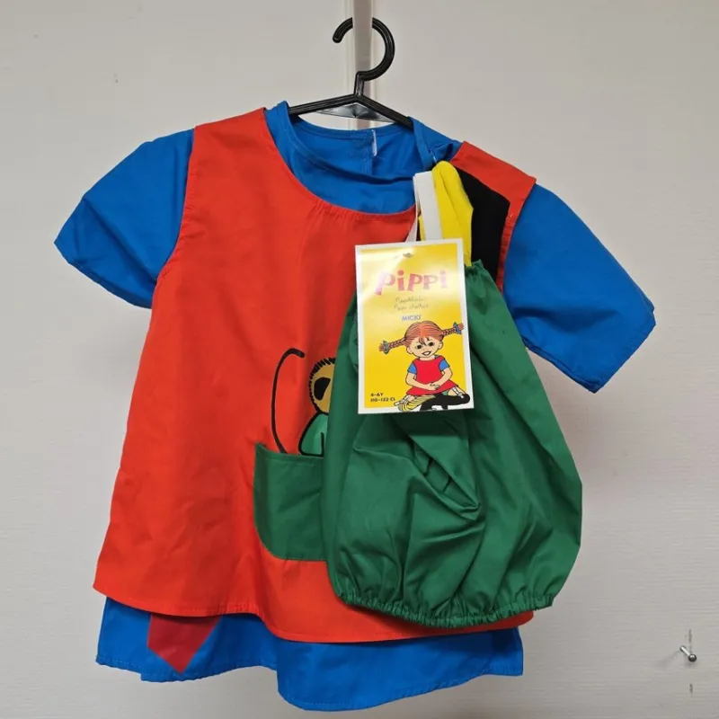 Micki leksaker, Söt och färgglad Pippi Långstrump-dräkt för barn. Dräkten inkluderar en tröja med Pippi-motiv, samt gröna och gula byxor. Perfekt för lek och rollspel! 4-6 år 110-122