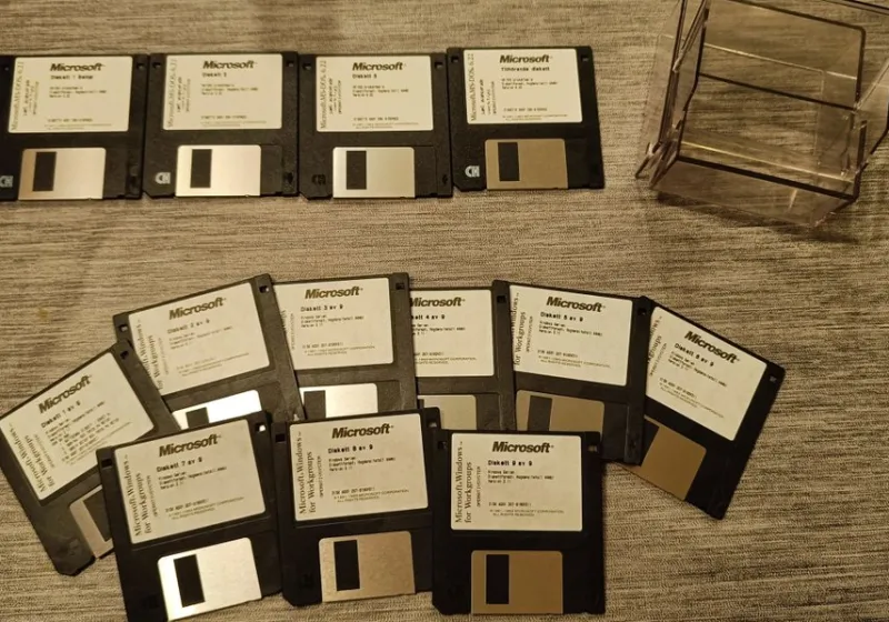Originaldisketter för Microsoft Windows 3.11 och MS-DOS 6.22.