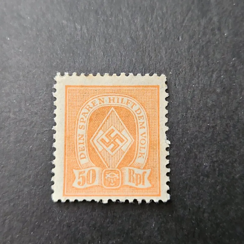 Här är ett sparmärke för HitlerJugend a 50 Reichspfenning för att sättas in I HJ-Sparmarkenkarte.
