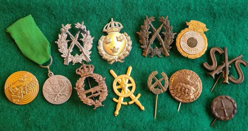 Tradera Militära Samlarsaker<Militär/ Skytte Märken 12 st