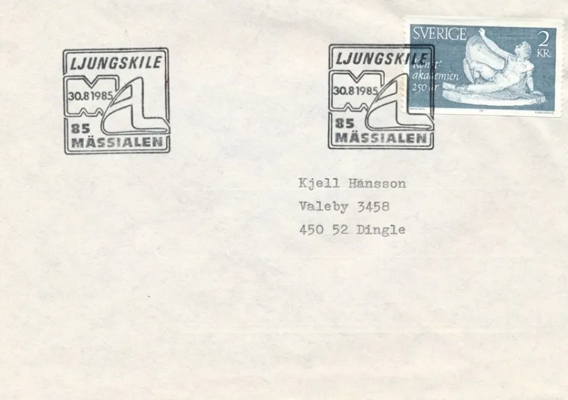 Försändelse med minnespoststämpel Ljungskile Mässialen 1985
