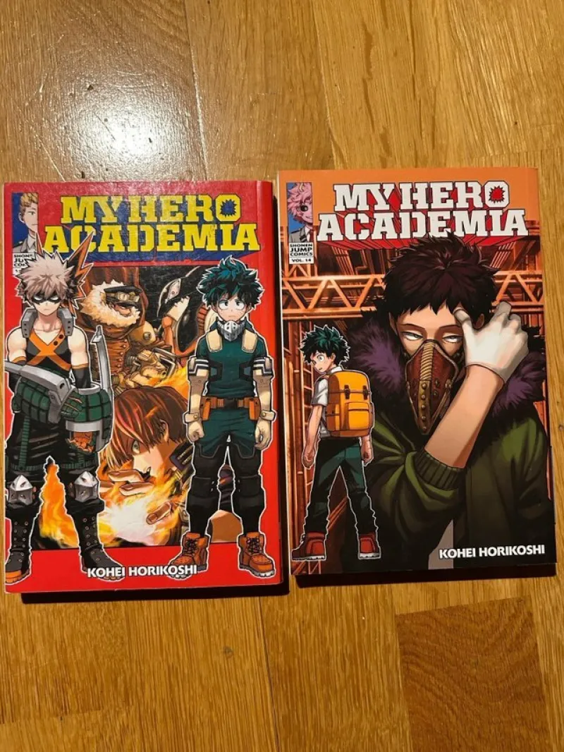 Två böcker från mangaserie My Hero Academia. Vol. 13 och 14.