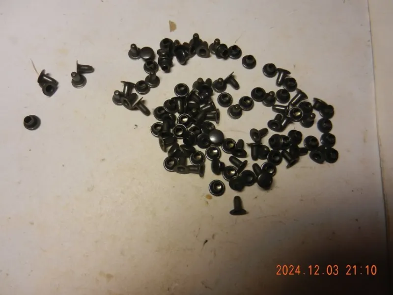 Art.9fb. 100 stycken. Dubbel nitar. Längd underdel c:a. 7,5 mm. Runt huvud överdel.c:a.7,2 mm. förnicklade. Moms ingår i priset och är avdragsgilt. Det är bara 50 st. på bilden. Momskvitta med följer. Fullständig ångerrätt 14 dagar. Köparen står för retur frakt. Återbetalning 1 mån.