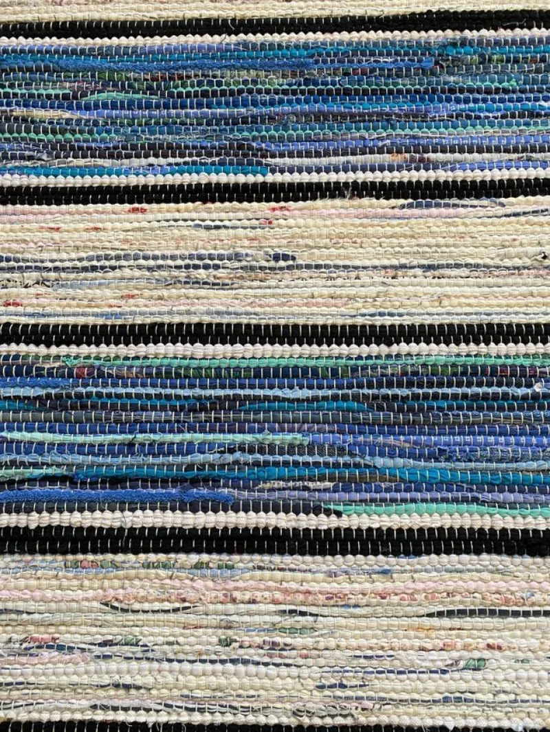 Dubbla inslag av färgäkta mattrasor av återvunna lakan mm