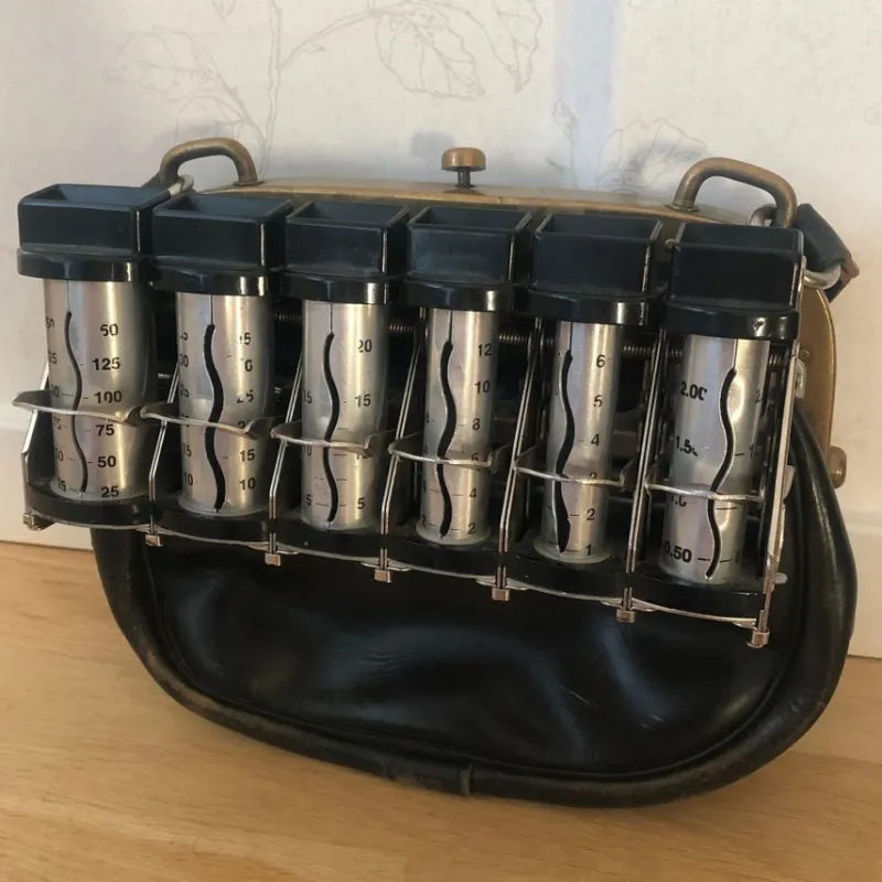 Konduktörväska med mynthållare. Mått ca 22×27 cm.