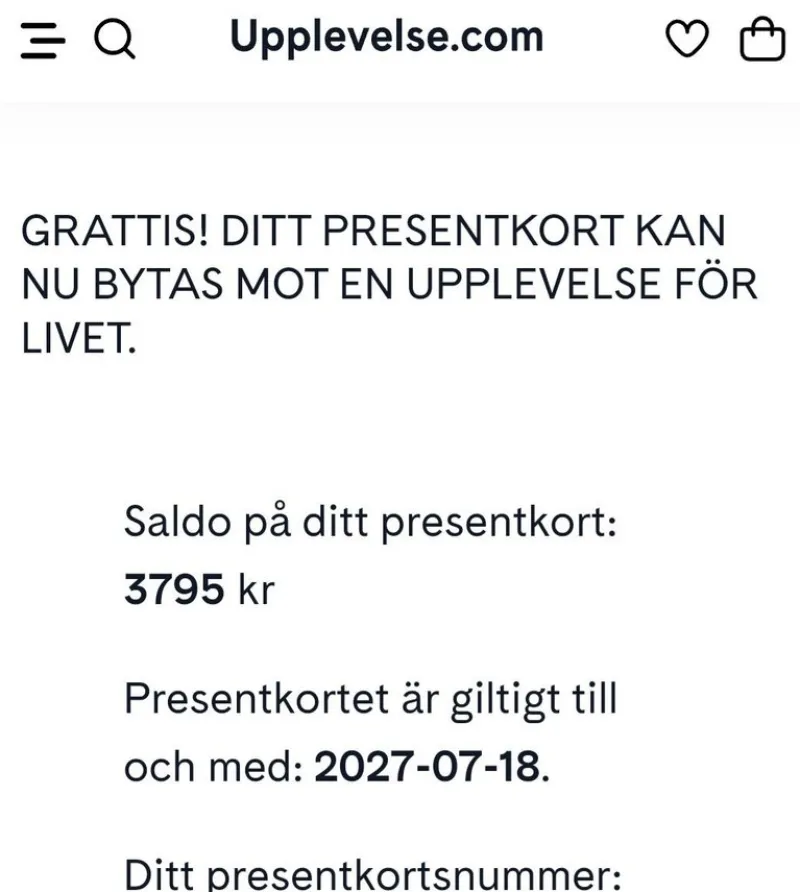 Tradera Presentkort från Upplevelse.com> Upplevelser