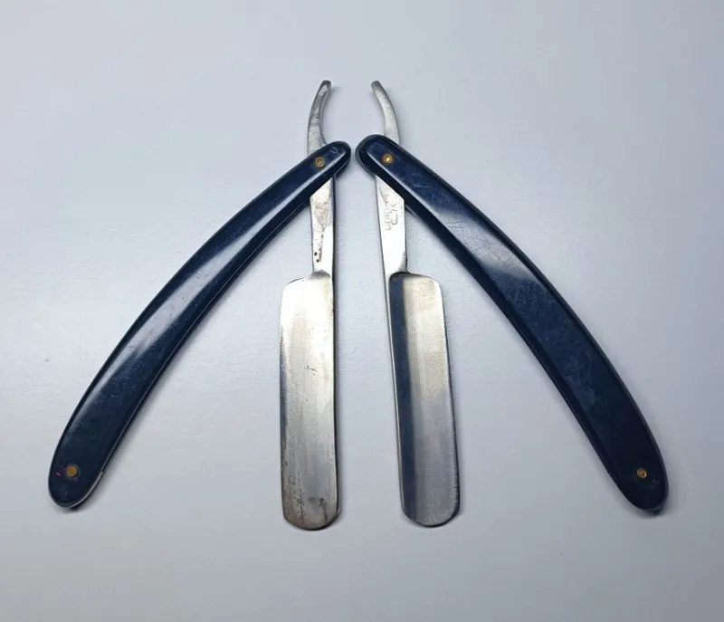 Två trevliga rakknivar i pappfodral enligt närbilder.