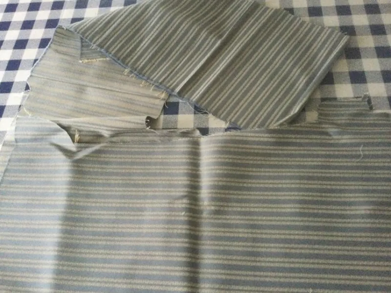 Tradera Randig stuv i grön/gula nyanser, ca 17 x 225 cm + lite till^ Sömnad & Stickning