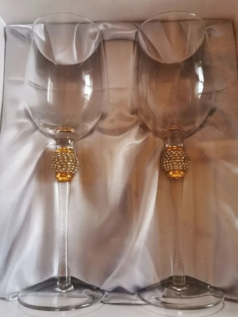 Glasen är dekorerade med en gnistrande kristallkula på stammen. Perfekta för festliga tillfällen eller som en elegant detalj i hemmet.