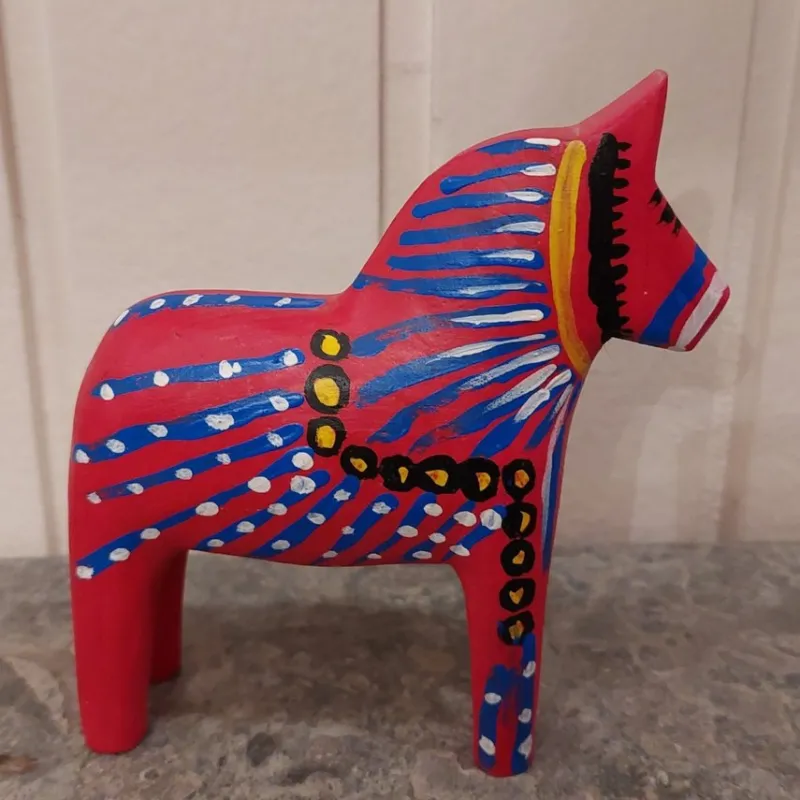 Handmålad häst 13 cm hög trol från 2004. Märkt LGF nr 12. Inga skador.