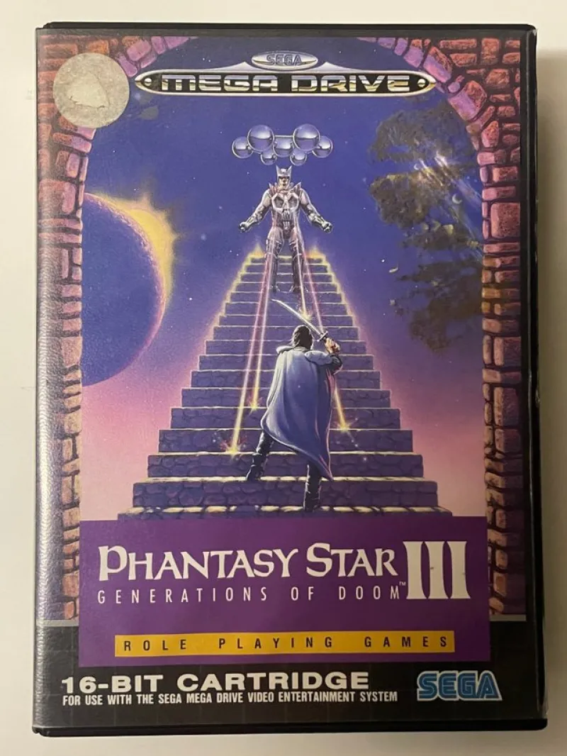 Phantasy Star III Generations of Doom till Sega Mega Drive. Spelet är komplett i originalkartong.