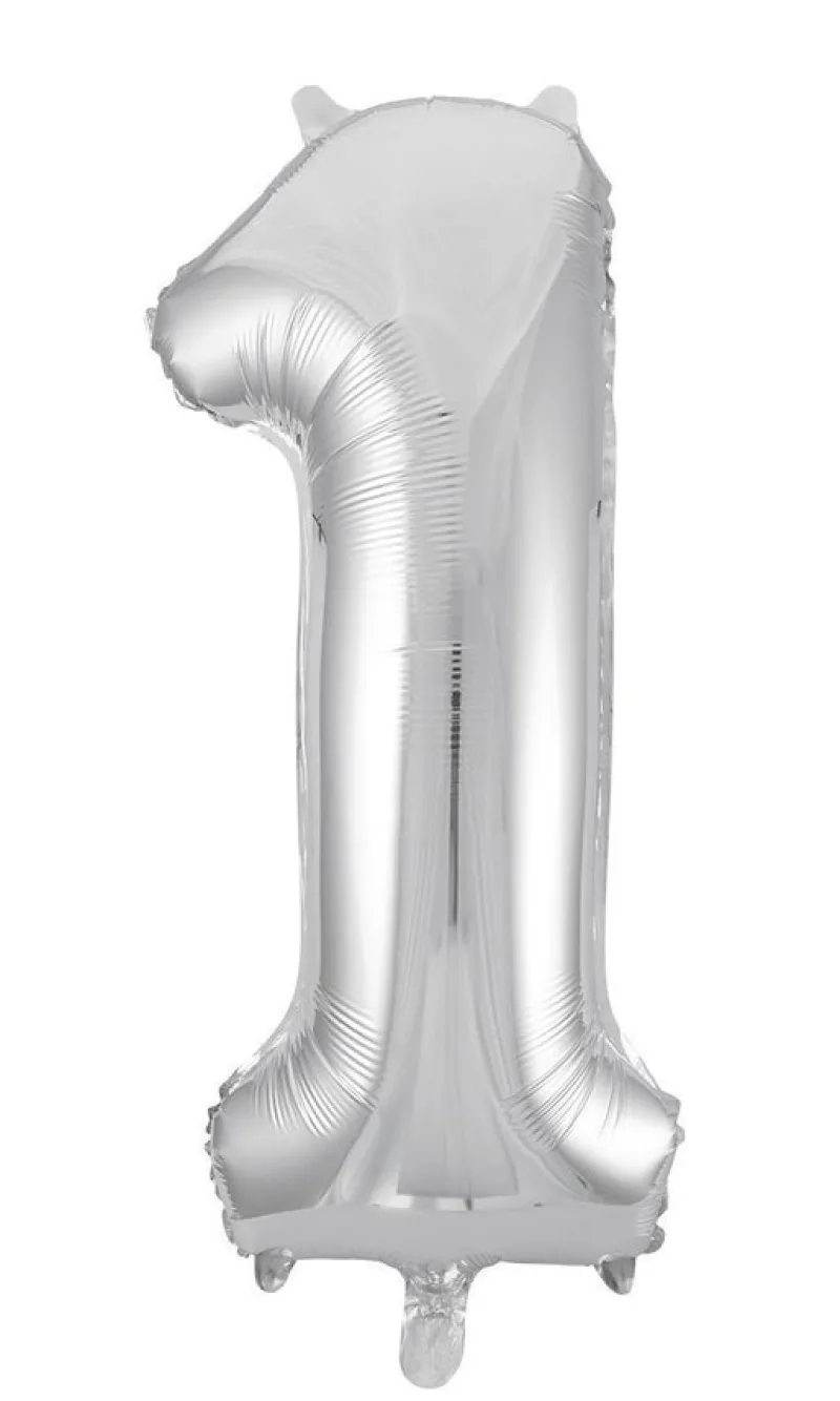 Dessa silvriga sifferballonger i storleken 86 cm fångar uppmärksamheten i festen.