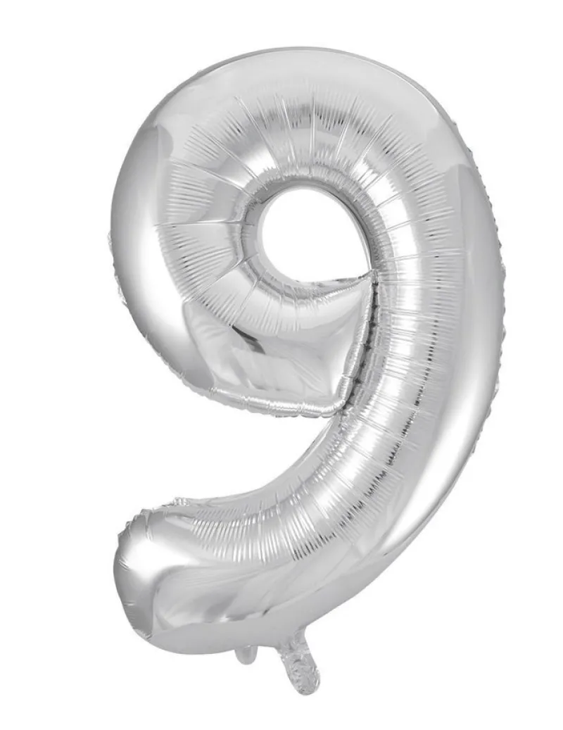 Dessa silvriga sifferballonger i storleken 86 cm fångar uppmärksamheten i festen.