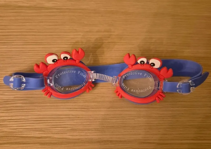 Coola och söta simglasögon med krabbor. För barn. Öronproppar följer med.