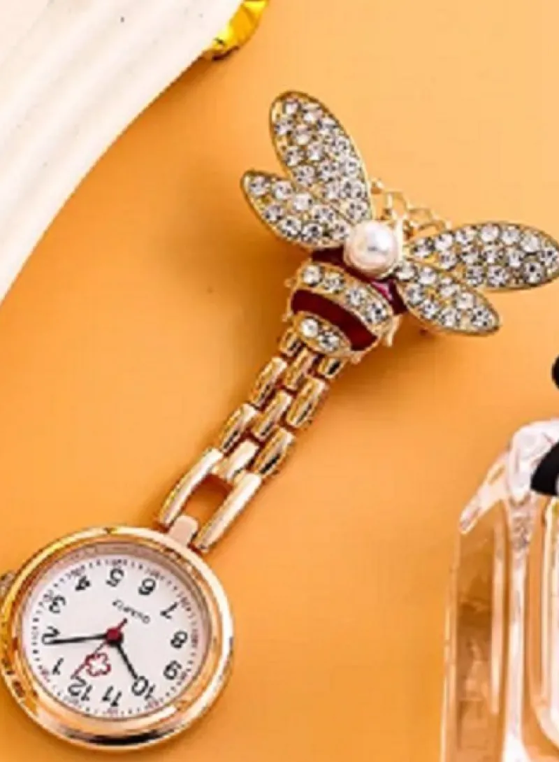 Sjuksköterskeklocka brosch, Fjäril, svart inläggning, Fastsätts med Nål