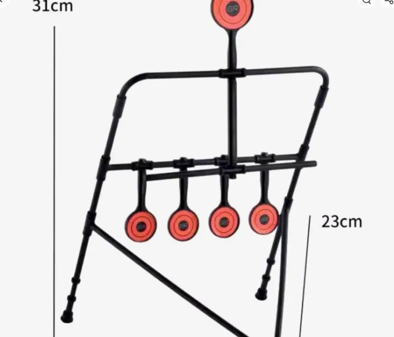 Säljer detta skjutmål med fem måltavlor. Konstruktion i svart plast. Perfekt för att öva precision och träffsäkerhet med leksaksvapen. Måltavlorna är enkla att byta ut. Höjd: 31cm, Bredd: 23cm. Snabb och enkel montering.