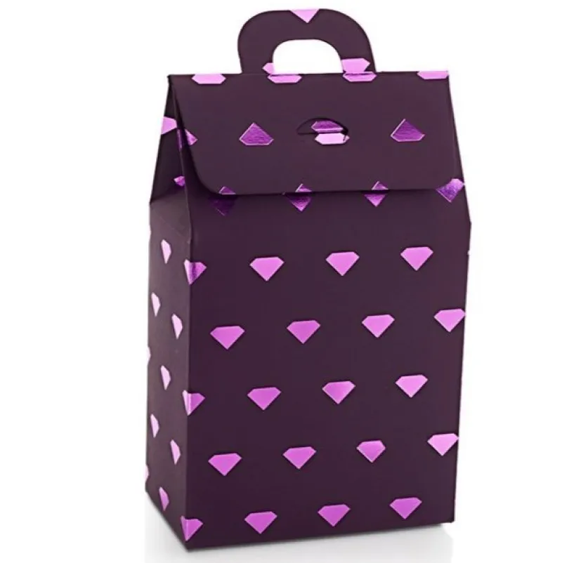Mörklila present-ask i papp med skimrande diamanter, av premiumkvalité från F. Hinds