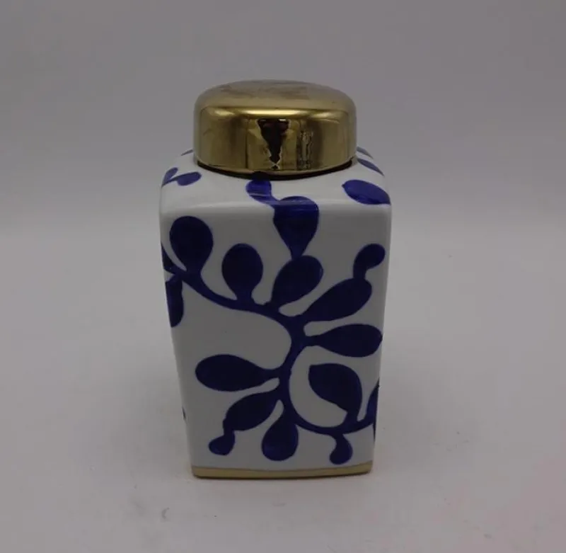 Söt porslinsburk handmålat mönster med förgyllt lock