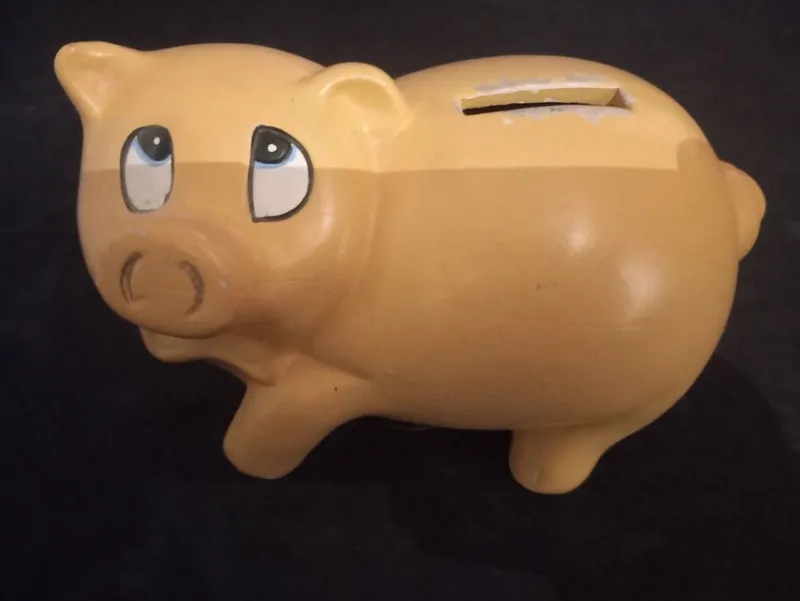 Söt spargris i keramik. Perfekt för att spara pengar eller som en rolig inredningsdetalj.