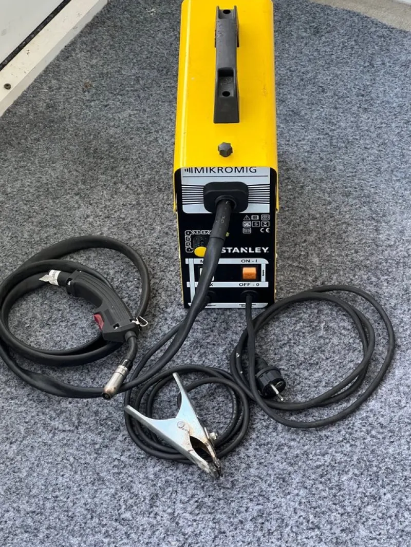 En Begagnade Stanley Mikromig svetsaggregat. Modell Mikromig. Inkluderar svetsbrännare och klämma.