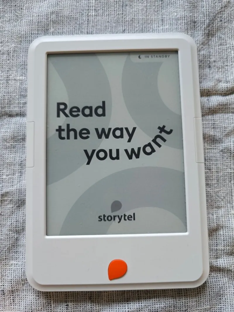 Storytel Reader e-läsare. Enkel att använda och perfekt för att läsa e-böcker. Kompakt och lätt att ta med sig.