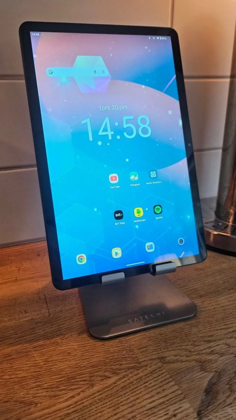 11” IPS HD.skärm på 1280×800 pixlar, Android 14.