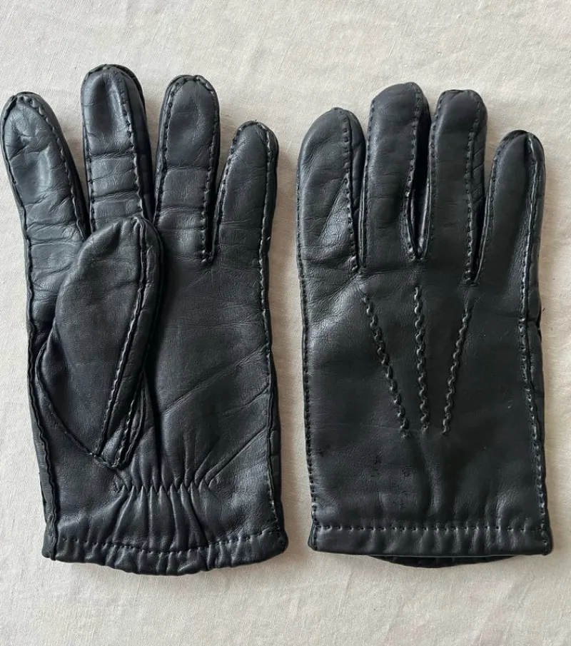 Produktinformation: Svarta läderhandskar med sömmar i svart tråd. Handskarna har en mjuk och bekväm passform.