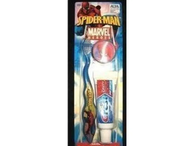 1 helt obruten Spindelmannenförpackning med: 1 st Tandborste, 1 st tandkräm & ett tandborstskydd att använda vid resa.
