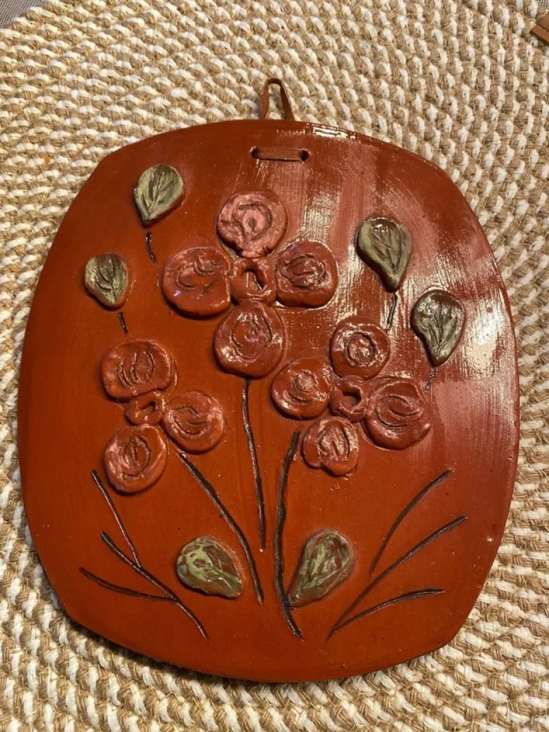Tavla i keramik med blommor. Fint använt skick.
