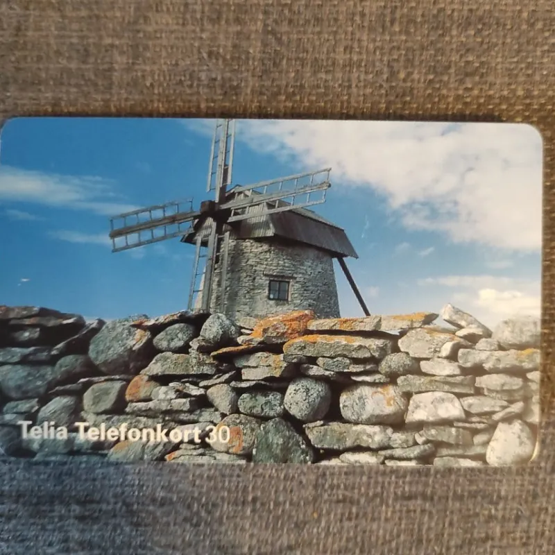 Telia Telefonkort om 30 kronor. Motivet visar en vacker vindkvarn vid en stengärdsgård.