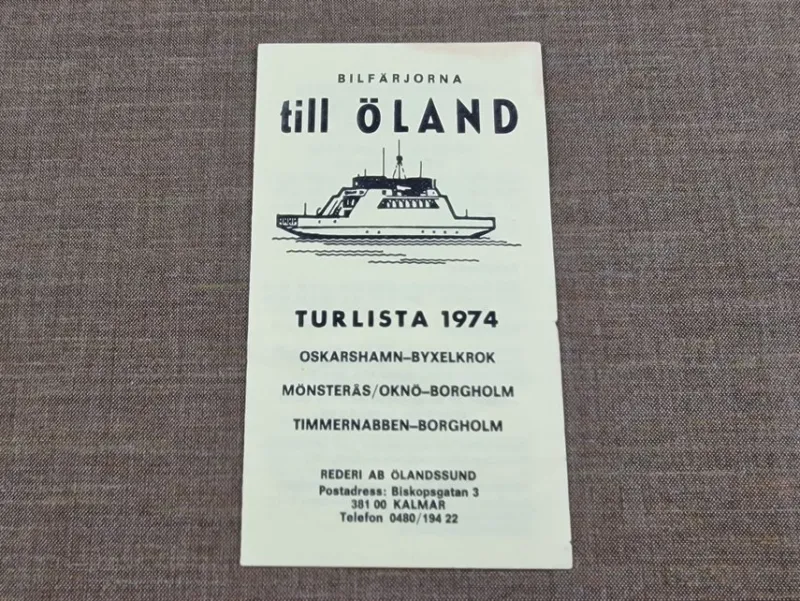 Tradera Tidtabeller<BILFÄRJORNA TILL ÖLAND – TURLISTA 1974