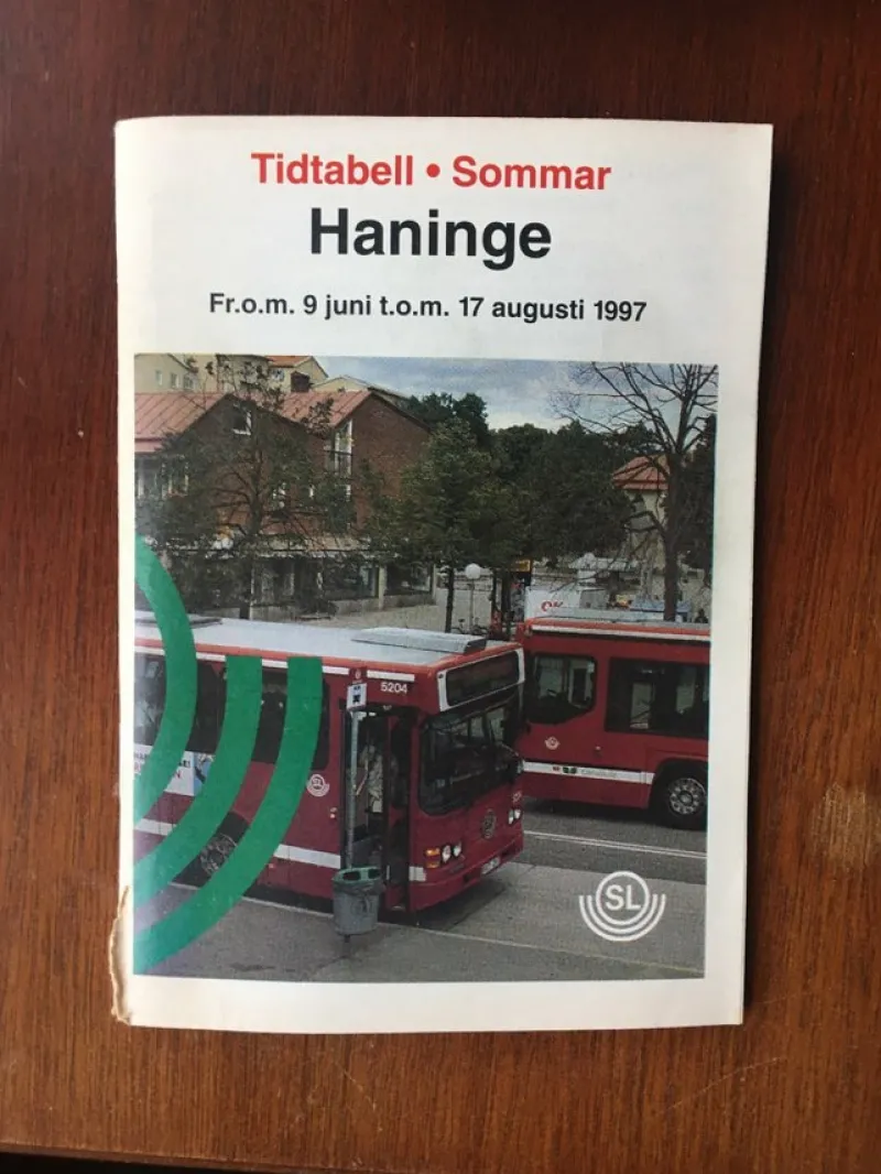 Tradera Tidtabeller<SL Tidtabell Haninge from 9 juni 1997