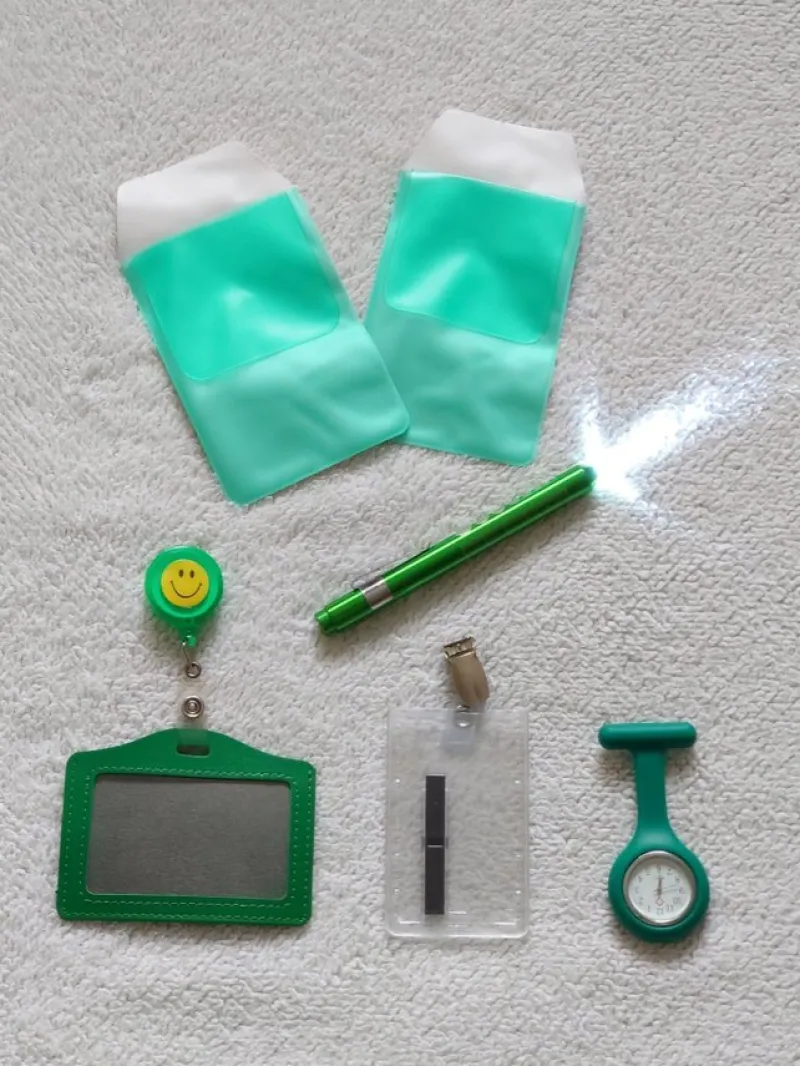 #vård #klocka #pennficka #nyckelhållare #ficklampa #lampa #kort #jobb