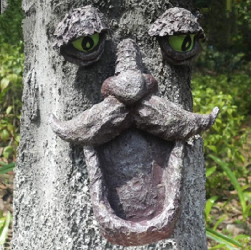Intressant trädansikte: Överdrivna ansiktsrörelser och stora ögon ger liv åt de tysta träden. Dekorationerna är verklighetstrogna, utsökt hantverk och naturlig färgstruktur, som får de tredimensionella verken att komma till liv och är värda alla trädgårdsälskare.