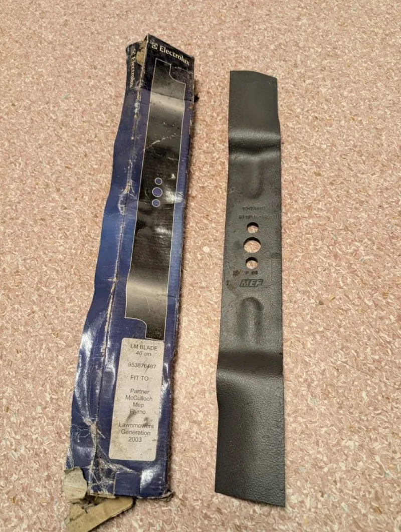 LM-blad, 46 cm. Artikelnummer: 953876467. Passar följande gräsklipparmärken: Partner, McCulloch, MTD, Flymo.