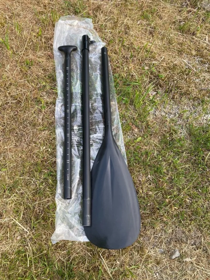Tredelad paddel i svart aluminium, teleskop justering från 165 – 205cm / 66 – 82”.
