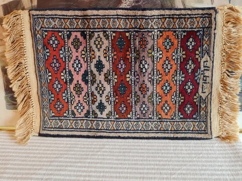VTG UNIKT ORIGINAL ORIENTALISK HANDKNUTEN FLERFÄRGAT SLITSTARK HANDGJORD ULLMATTA 59x33cm